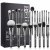 24-Piece Professional Black Makeup Brush Set with Wooden Handles
